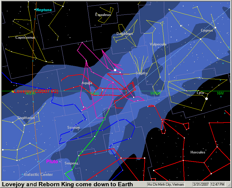 The visions of stars on a journey through time carry the most profound message that time has to offer. They show Synchronicity so profound that an honest eyewitness would have to declare, "It was intended to be so." If we accept this Swan Song on the NW horizon of the killing field, then death has no sting unless birth is forgotten. And yet, were it not for stardust that sows the Pangenesis of Panspermia, what meaning would birth have. To live just to die, is that Intelligent Design? Is there more to life than traumatic malcontent before death sets one free? A comet named Lovejoy and a child called Prince of Peace and a Lyra all coming down to rest on Mother Earth beneath a goat called Cornucopia and a Swan called the True Cross suggest that there is more to a Big Bang than runaway inflation and eventual red shifting darkness. Any man child with the slightest rational cognition cannot but state, "This was a premonition before it became the journey of Pangenesis of Panspermia." A Cosmic Father clearly accomplished the Lovejoy Intent, and a Cosmic Mother was the medium of a rational love. A rational love knows it own purpose because love is its intent.