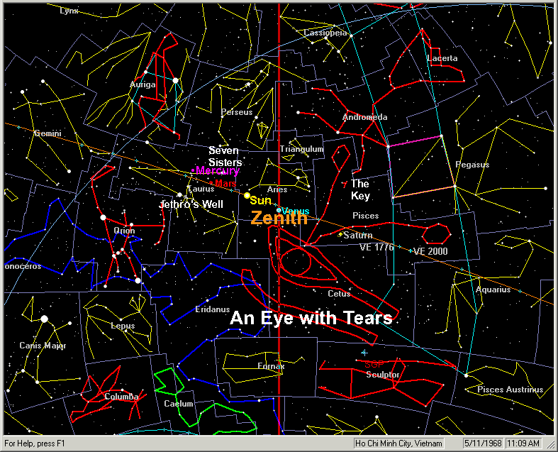 zenith near the Gordian Knot at the iris of the Eye of Siloam. At the south we
